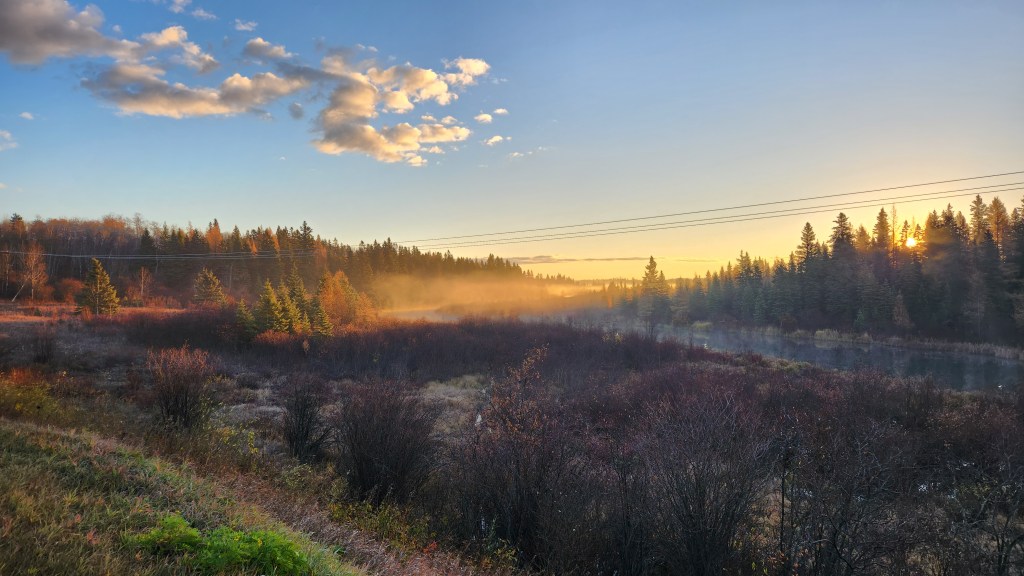 The most significant progress that I have made on my list of 55 things I want to accomplish in 55 months is the loss of just over 20 lbs to date. Other progress that I have made – I have visited my daughter twice, spent some time walking the beach, visited two towns in Saskatchewan that I have never been to/through, and watched the sun come up on the Barrier River on a foggy morning on my way to Melfort . . . it was so breathtakingly beautiful that I just had to turn my Jeep around for another look . . .