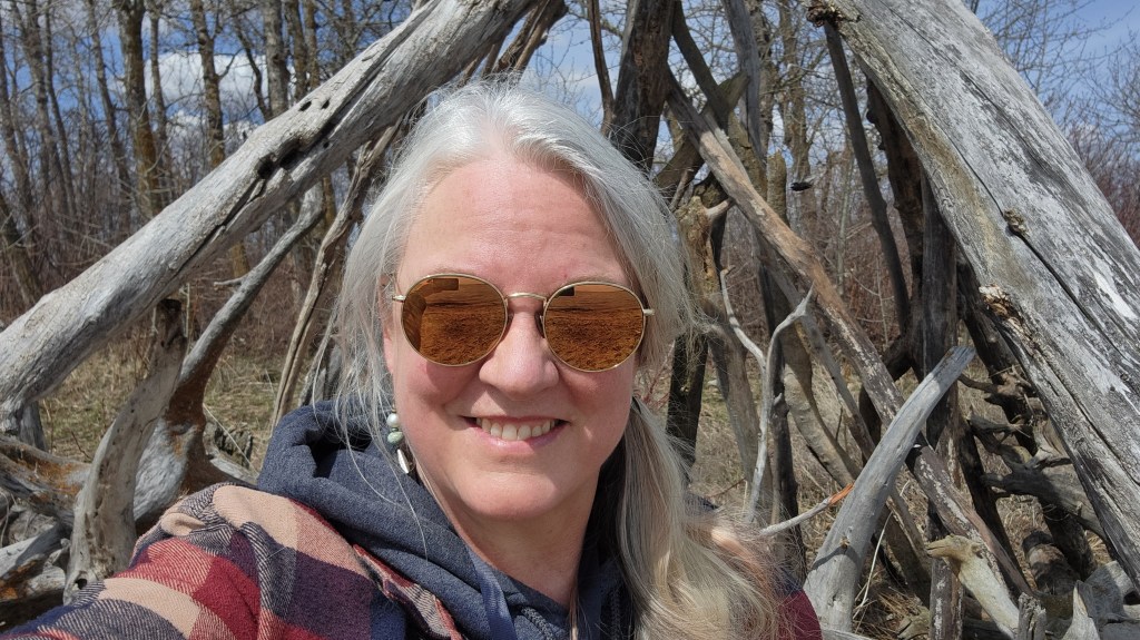 For the last month, three to four times a week, I have been able to get away to the Kuroki Fish and Game Beach with my doggo. As Koda plays in the water, I walk the beach collecting driftwood. For as long as I have come to this place, the “structures” of dead logs pushed up by the water and ice have intrigued me. This year, inspired by nature, I have created my own sacred space to sit and just enjoy living in the moment.