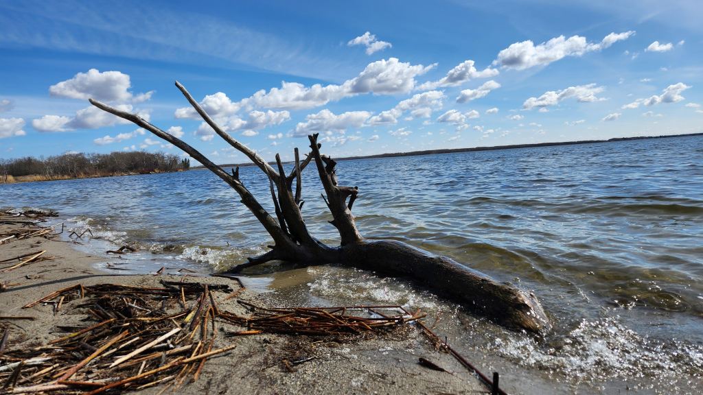Driftwood is often associated with the element of water, which represents emotions, intuition, and the subconscious mind. Similar to the tides [waves on the lake] that bring driftwood to the shore, our emotions ebb and flow, shaping our experiences and spiritual growth.